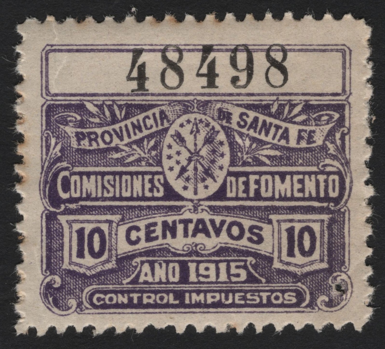 Scg 4525 - argentina – santa fe province fiscal revenue stamp, 10 centavos (1915)