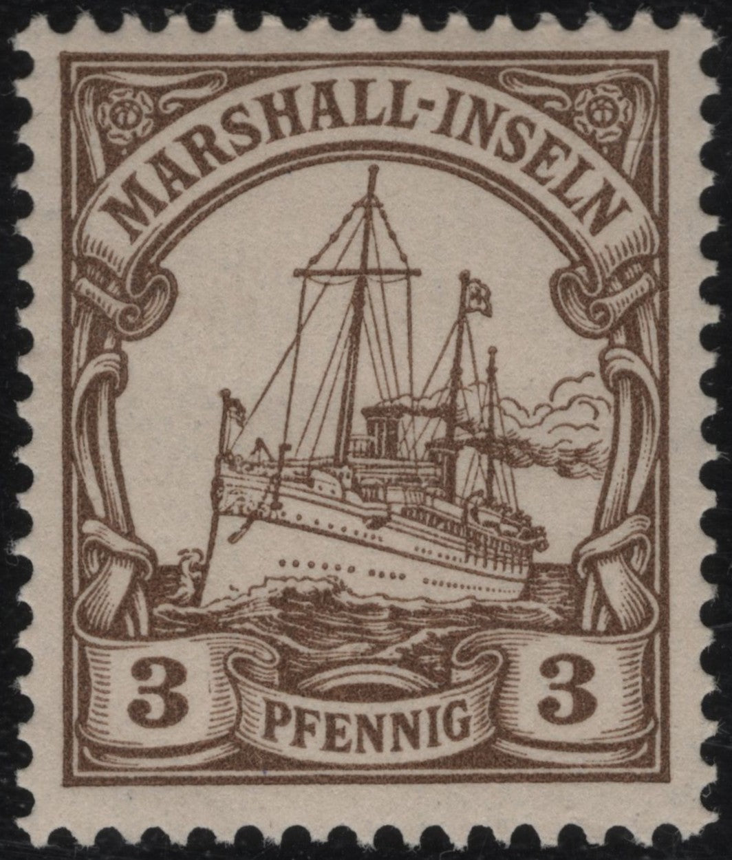 Scg1136 - marshall islands 3 pfennig ship stamp – german colonial era (variant)