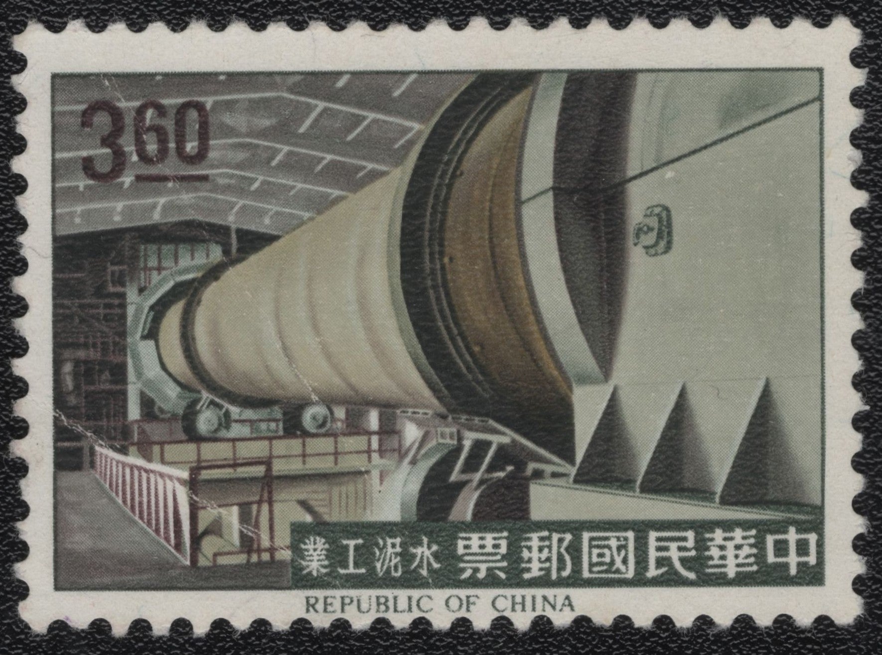 Rs. 20.00Rs. 20.00/This 360-cent stamp from the Republic of China (Taiwan) showcases a large rotary kiln inside a cement plant, highlighting the nation's push toward industrial modernization. Issued...