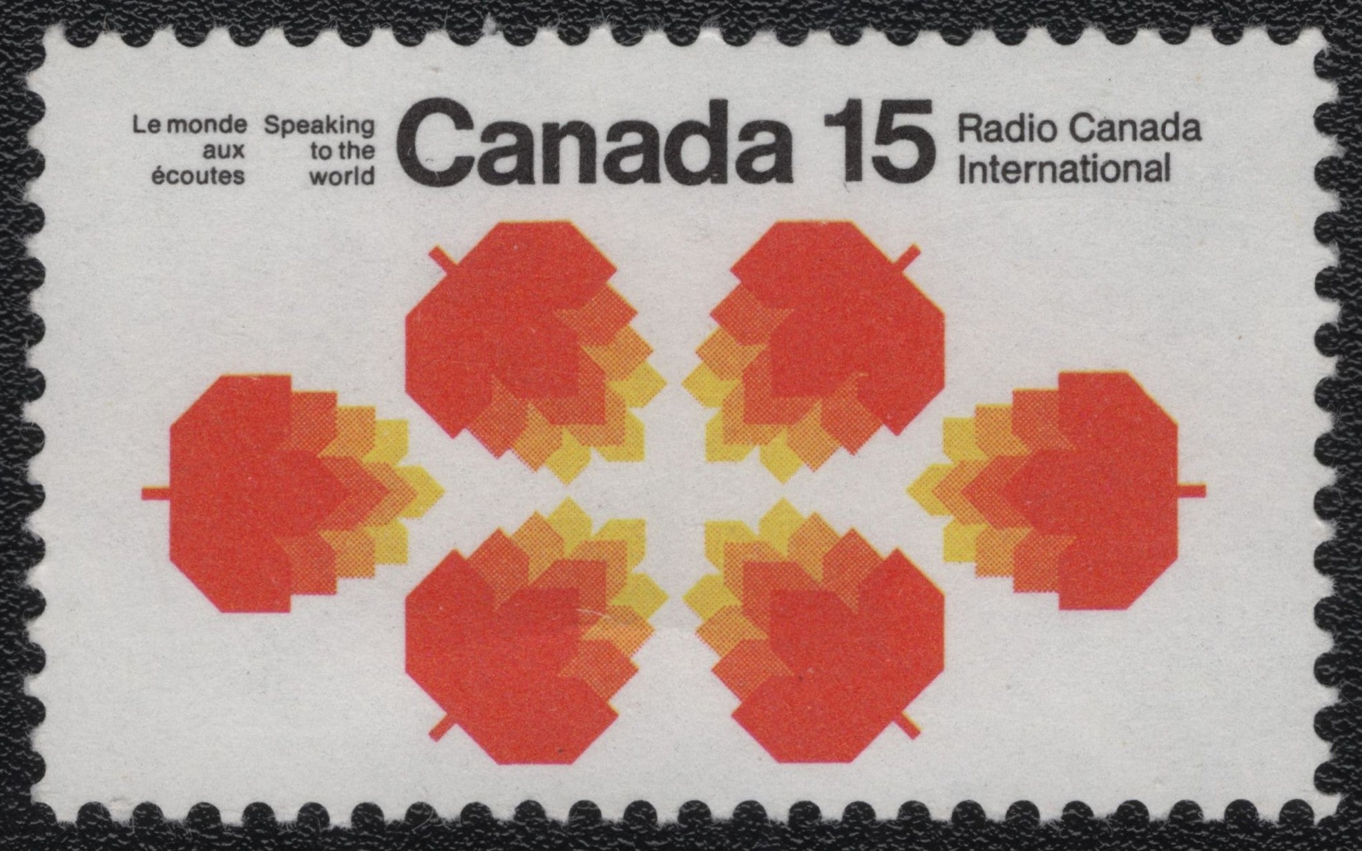 Rs. 20.00Rs. 20.00/Issued by Canada, this 15-cent stamp celebrates Radio Canada International and its mission of broadcasting to a global audience. Designed with bold, stylized maple leaves radiating...