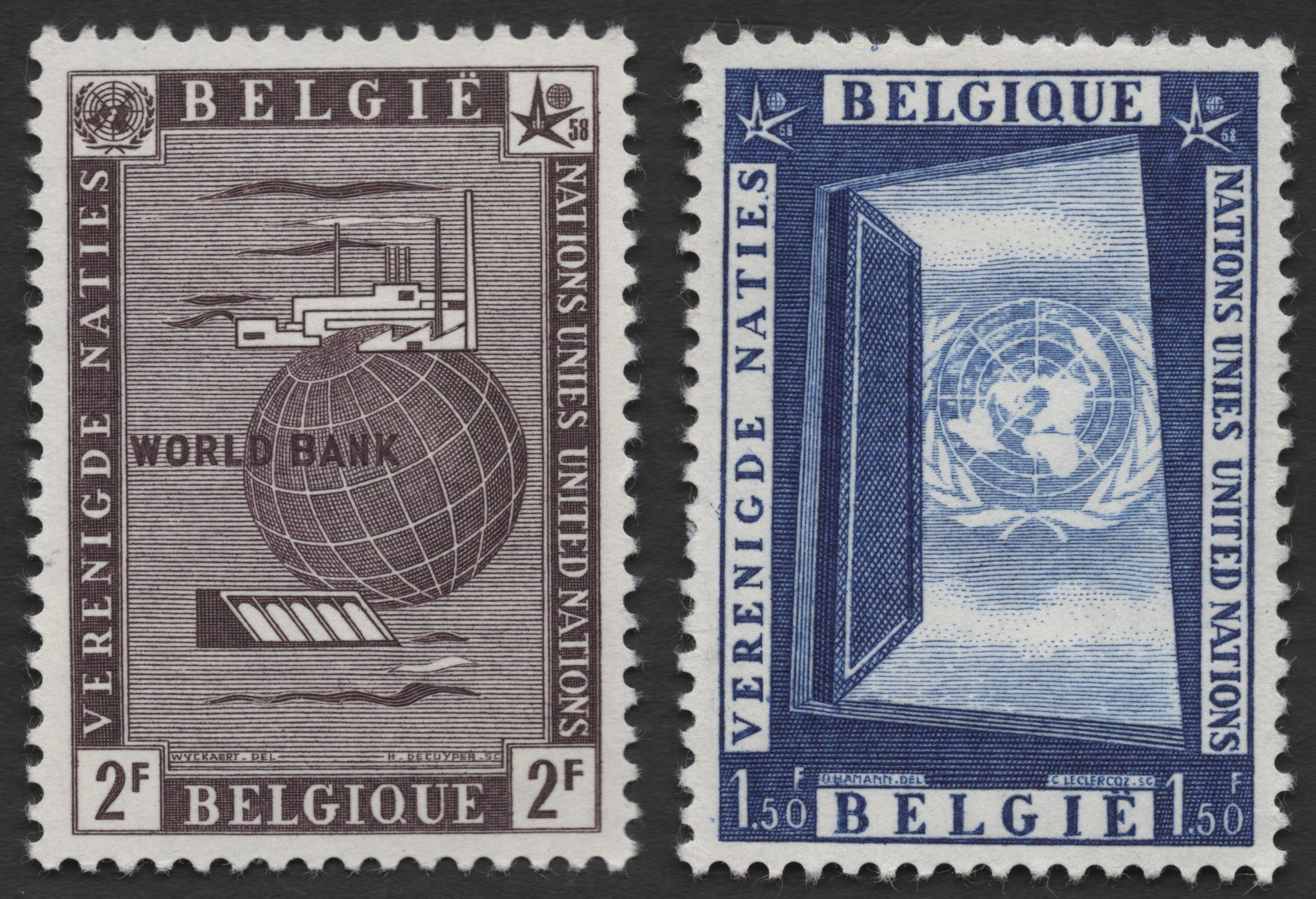 Rs. 40.00Rs. 40.00/These Belgian stamps highlight the nation’s support for international cooperation through key global institutions. The brown 2F stamp depicts the World Bank symbolically represented by a...
