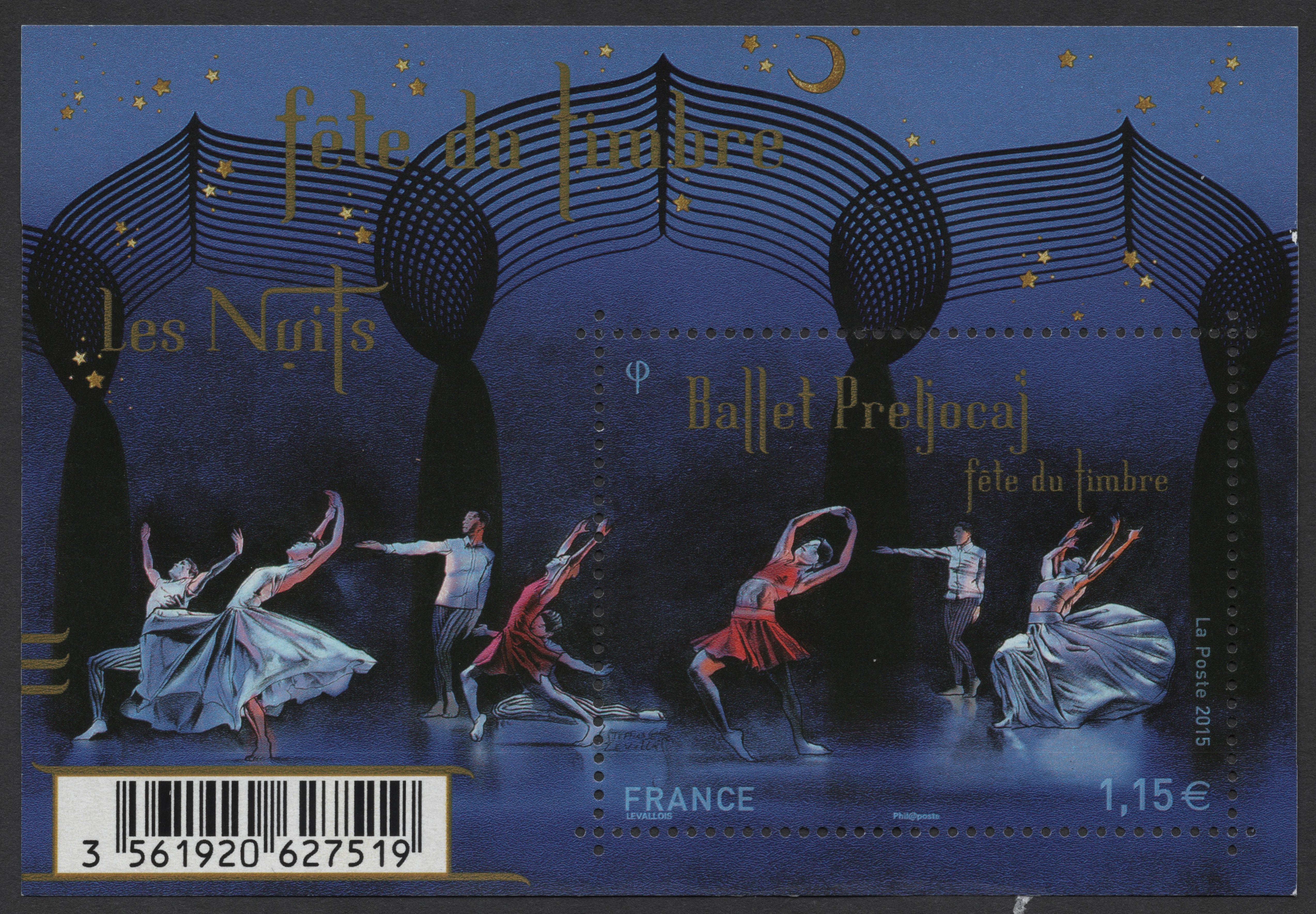 Rs. 70.00Rs. 70.00/Issued in 2015 by node=""France, this elegant souvenir sheet celebrates the Fête du Timbre (Stamp Festival) with a tribute to the contemporary Ballet Preljocaj. The nighttime...