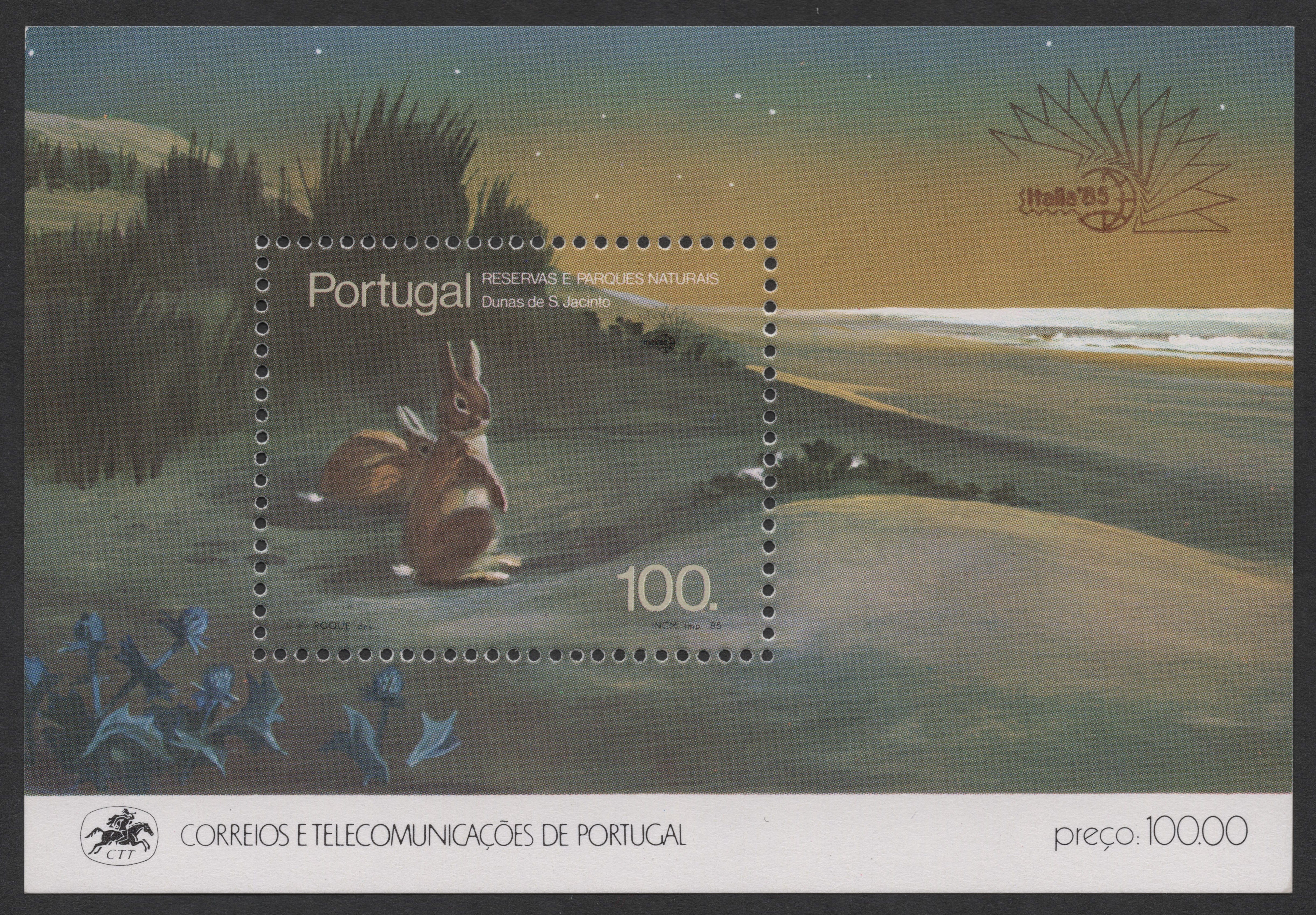 Rs. 80.00Rs. 80.00/This 1985 souvenir sheet from only-node=""Portugal showcases the scenic dunes of São Jacinto, a protected natural reserve, as part of the “Reservas e Parques Naturais” series....