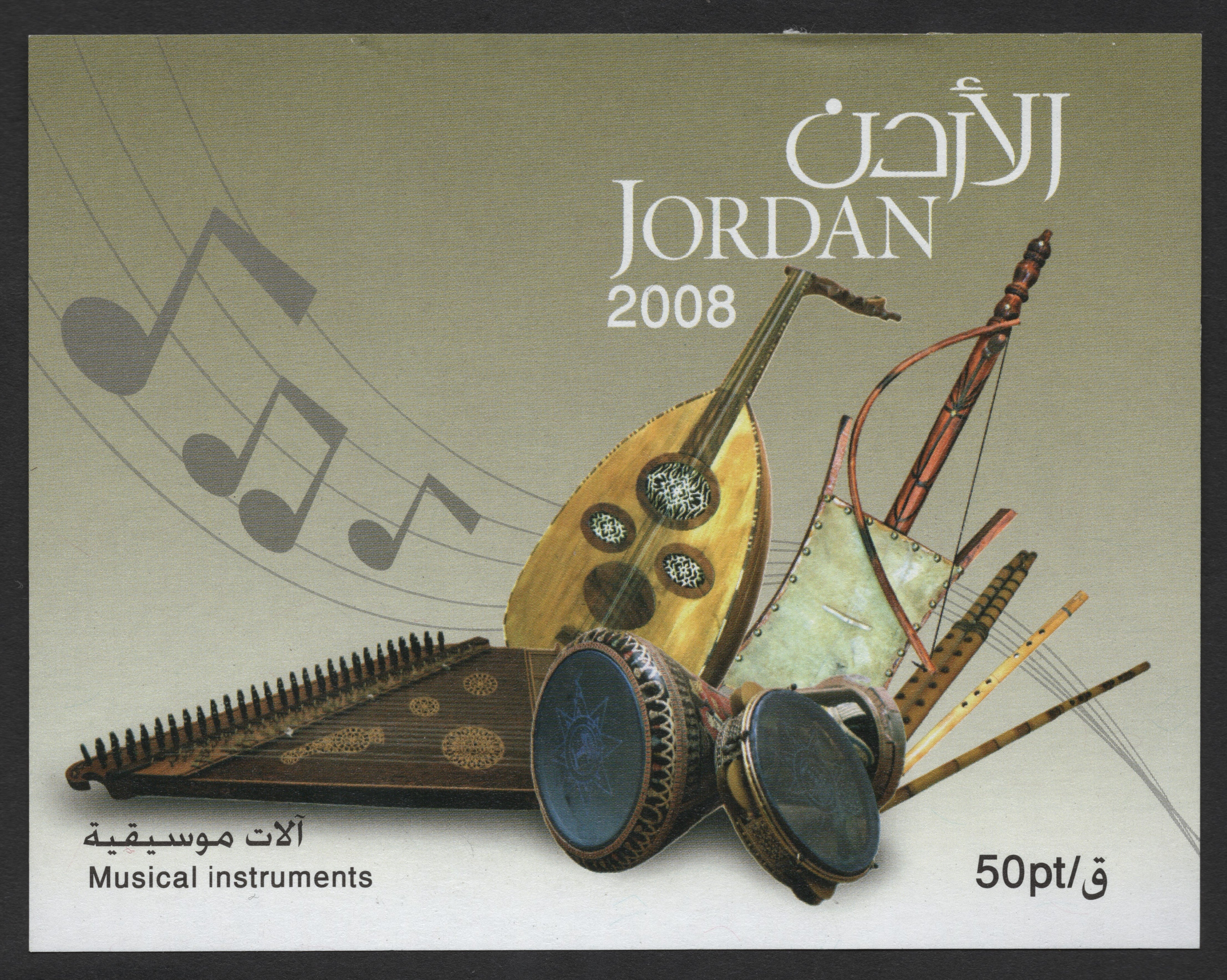 Rs. 120.00Rs. 120.00/Issued by data-start="99" data-end="109" data-is-only-node=""Jordan in 2008, this attractive souvenir sheet showcases a variety of traditional Middle Eastern musical instruments, including the oud, qanun, darbuka, and...