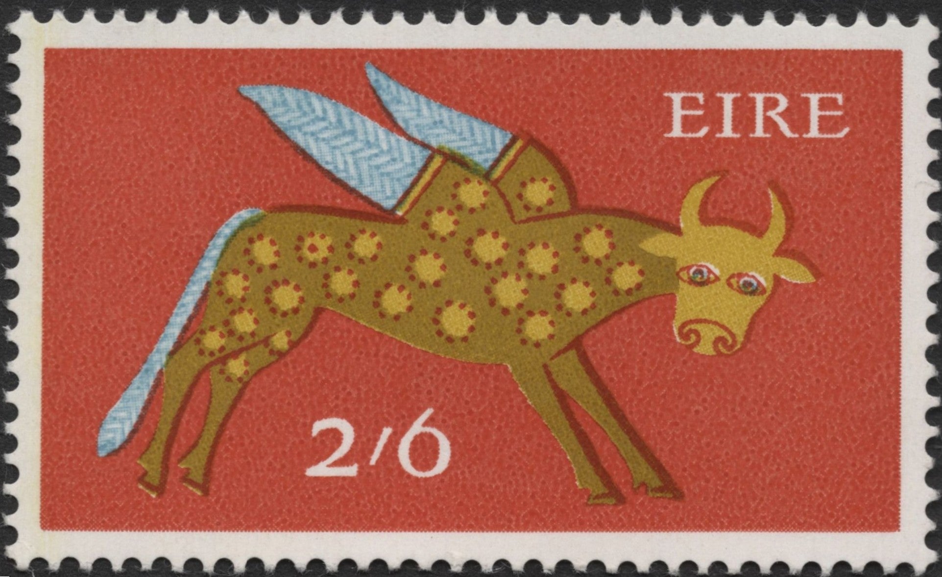 Rs. 20.00Rs. 20.00/This imaginative Irish stamp from Éire features a stylized winged bull, depicted in a bold and colorful folkloric art style. Denominated at 2 shillings and 6...