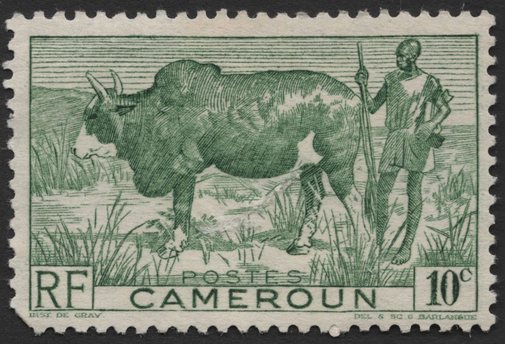 Scg1426 - french cameroon – cattle herder and oxen stamp