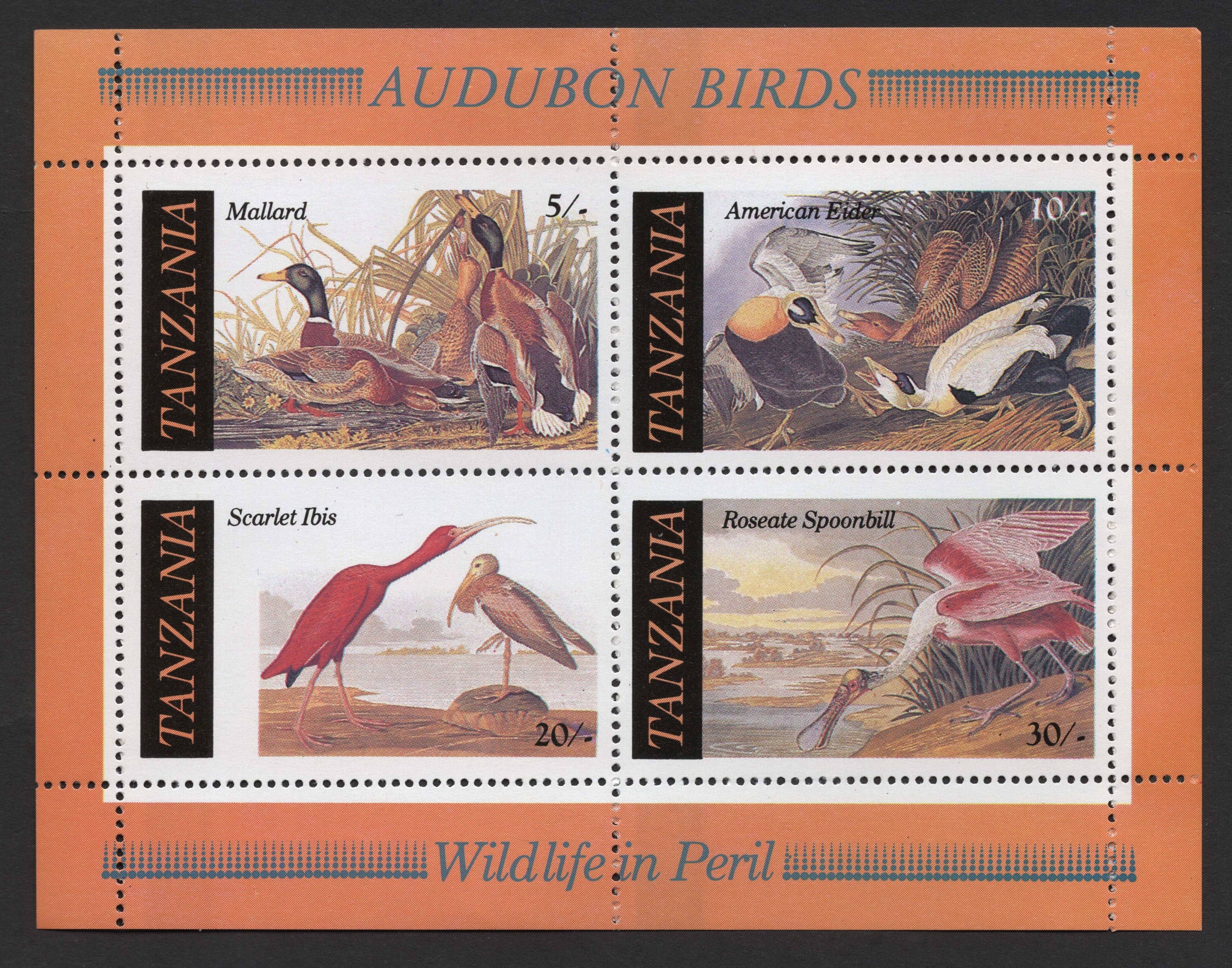 Scg1436 - tanzania "audubon birds – wildlife in peril" miniature sheet