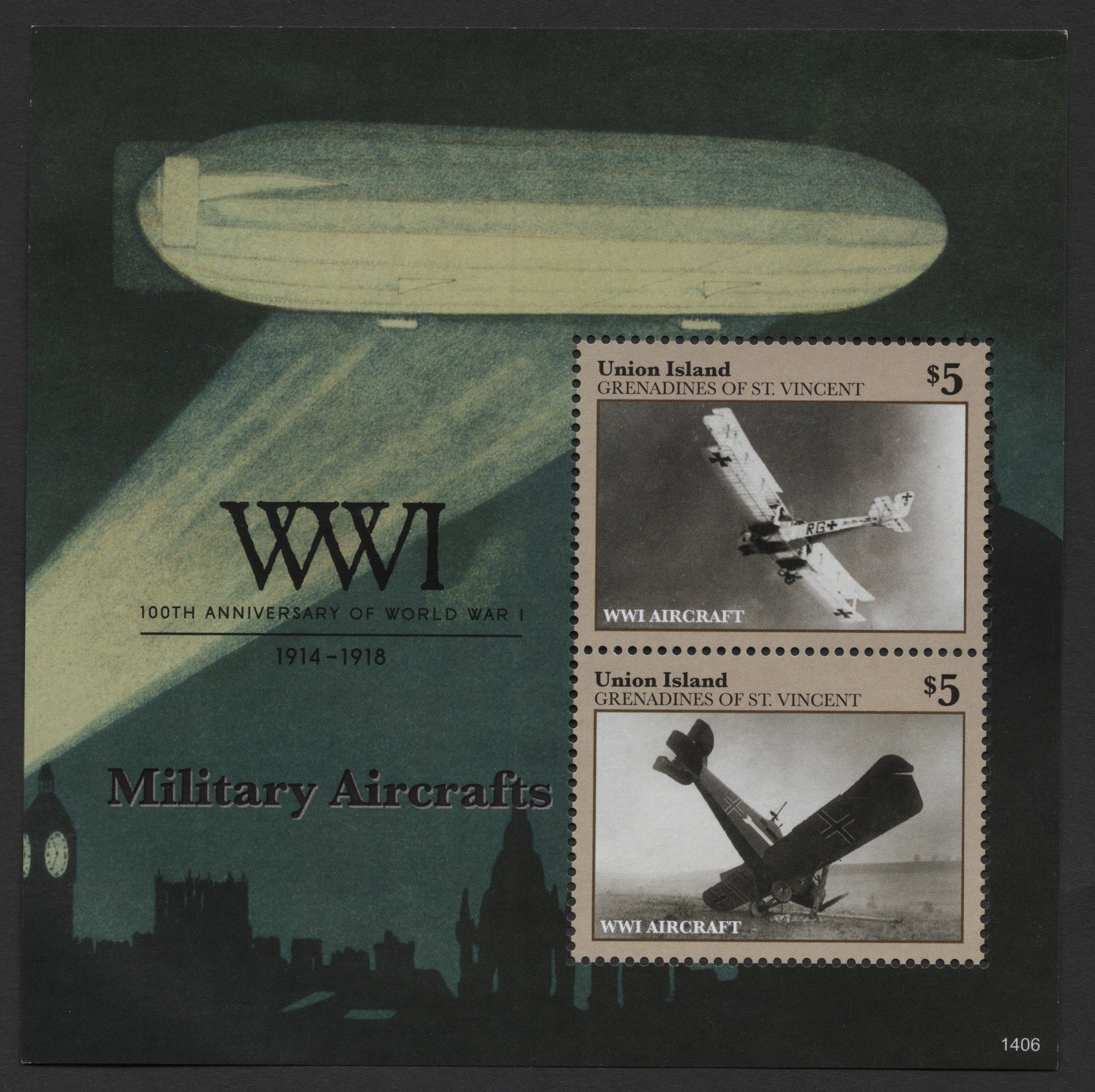Scg1440 - union island wwi aircraft miniature sheet – 100th anniversary of world war i