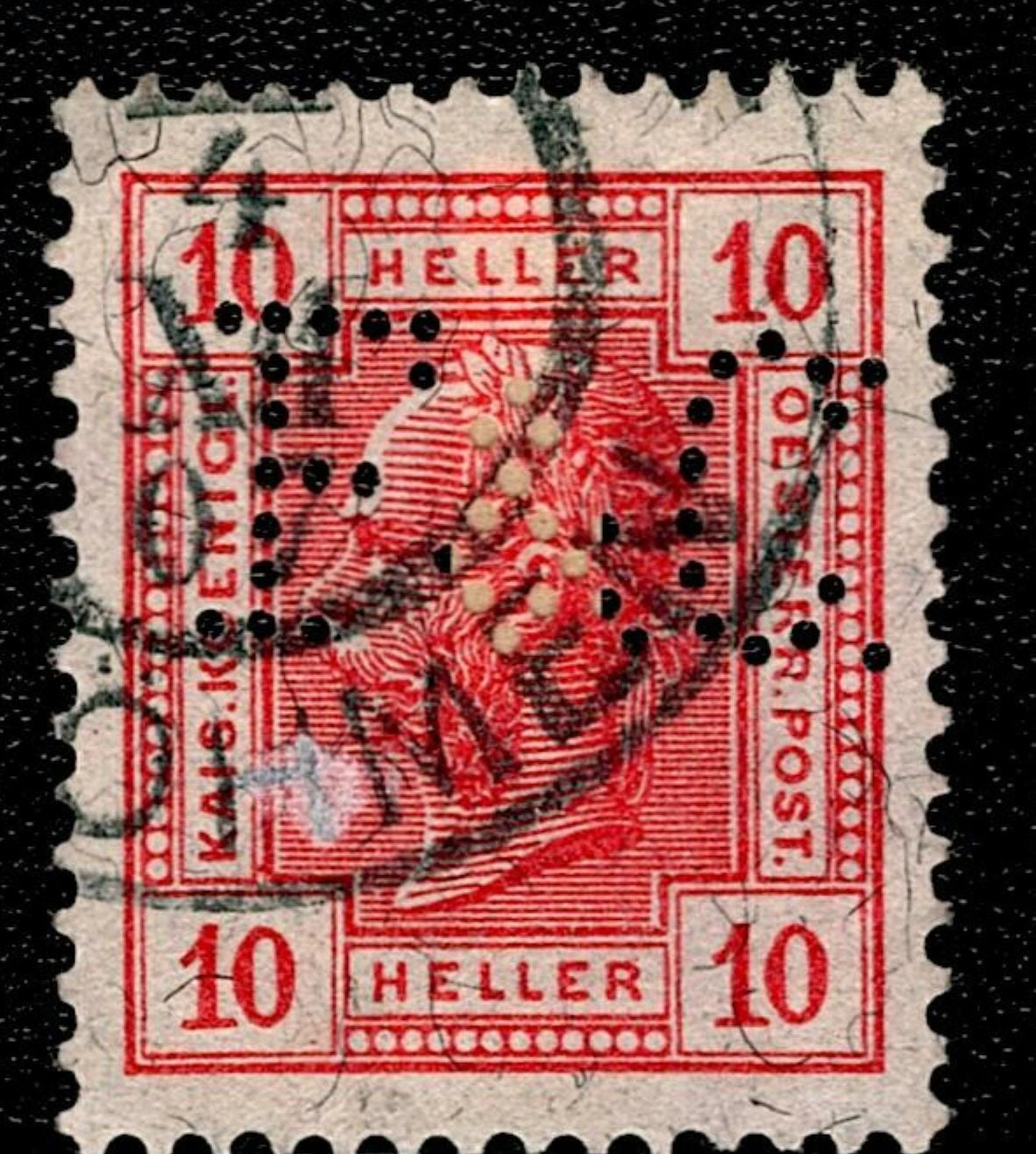 Scg149 austria 10 heller emperor franz joseph i perfin stamp – red issue – used
