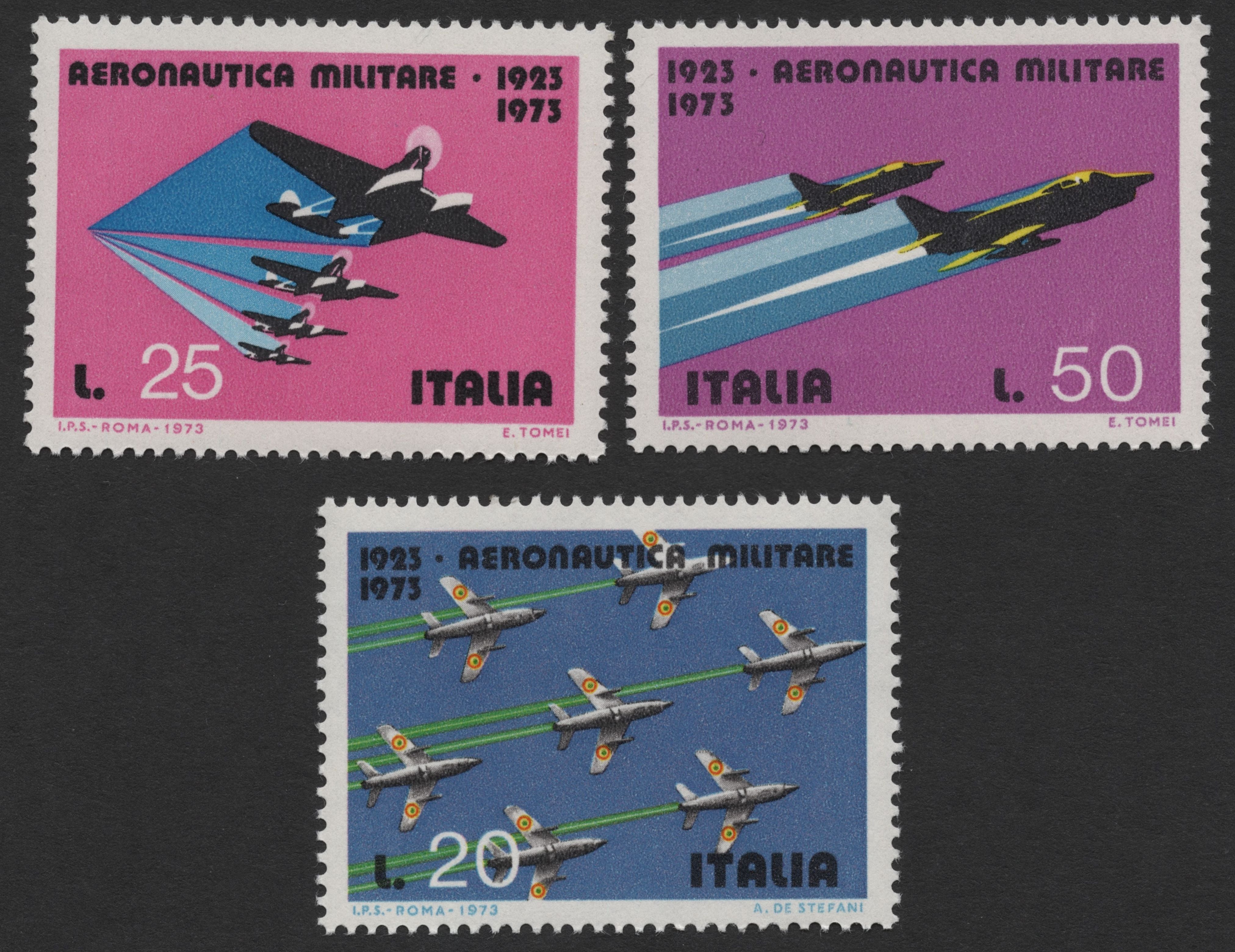 Rs. 60.00Rs. 60.00/This dynamic 3-stamp set issued by Italy in 1973 honors the 50th anniversary of the Aeronautica Militare (Italian Air Force), established in 1923. The designs feature...