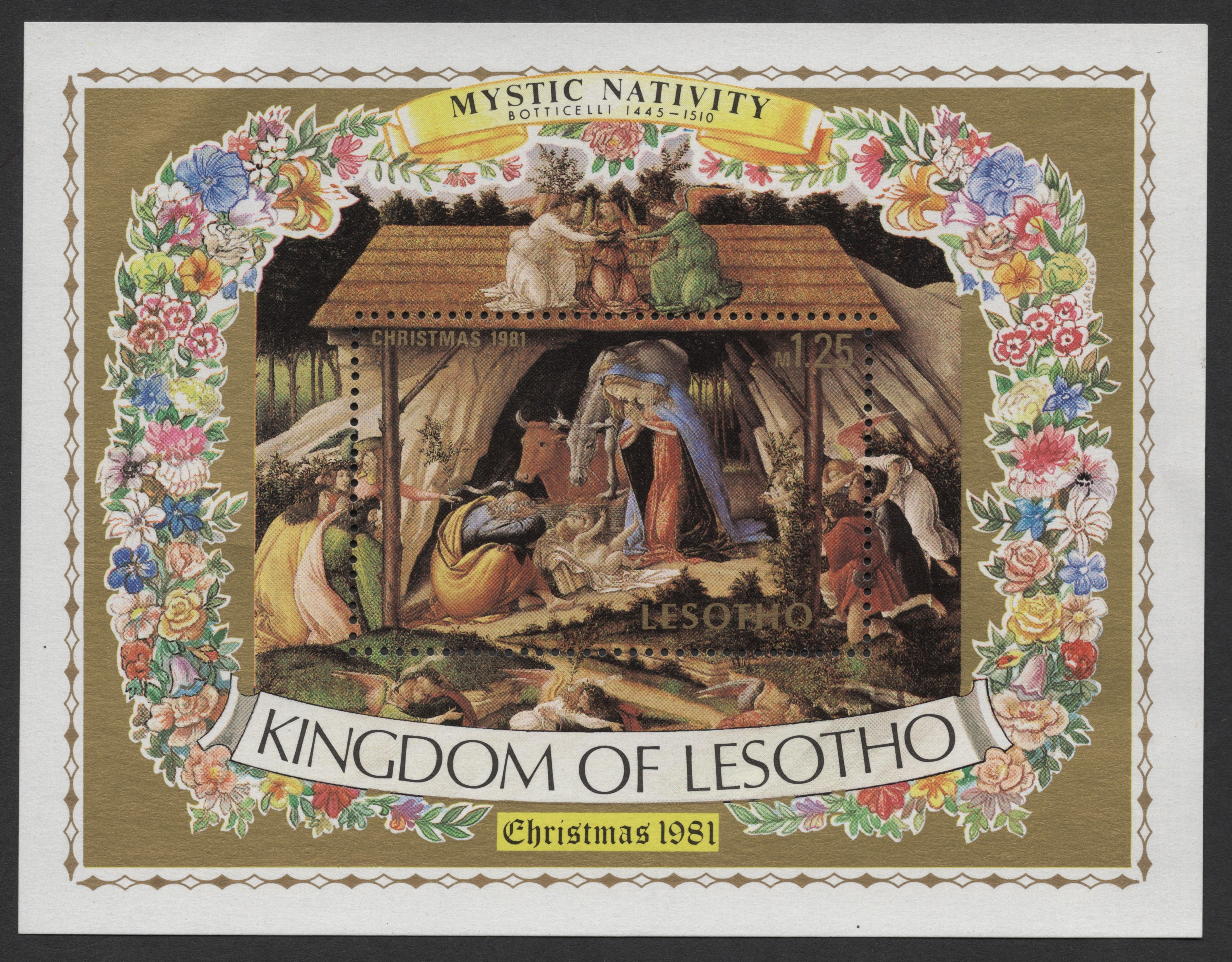 Scg1642 - lesotho 1981 christmas miniature sheet – mystic nativity by botticelli
