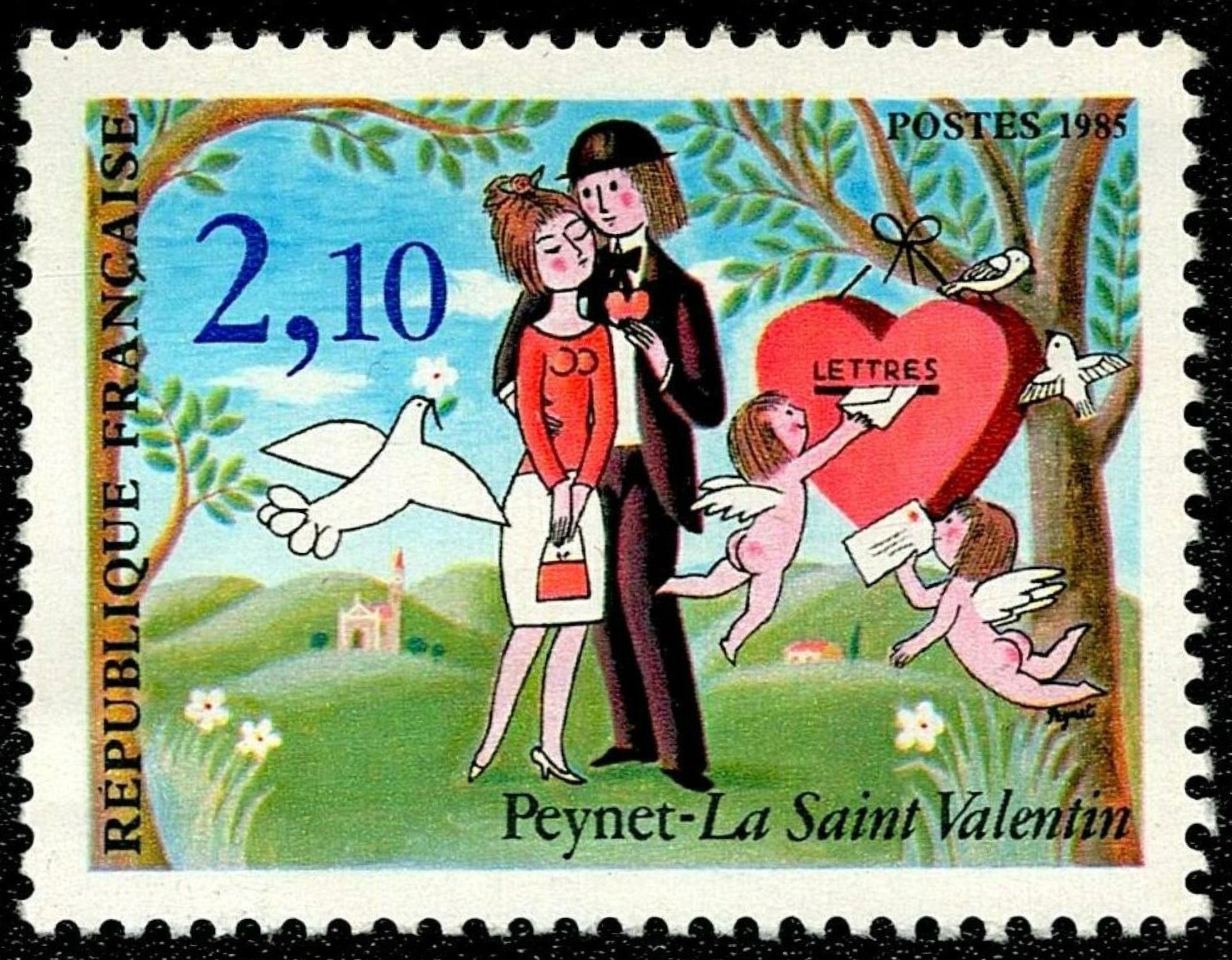 Rs. 20.00Rs. 20.00/Issued by France in 1985, this colorful 2.10 franc stamp celebrates Saint Valentine’s Day with whimsical artwork by famed illustrator Raymond Peynet. It features a romantic...