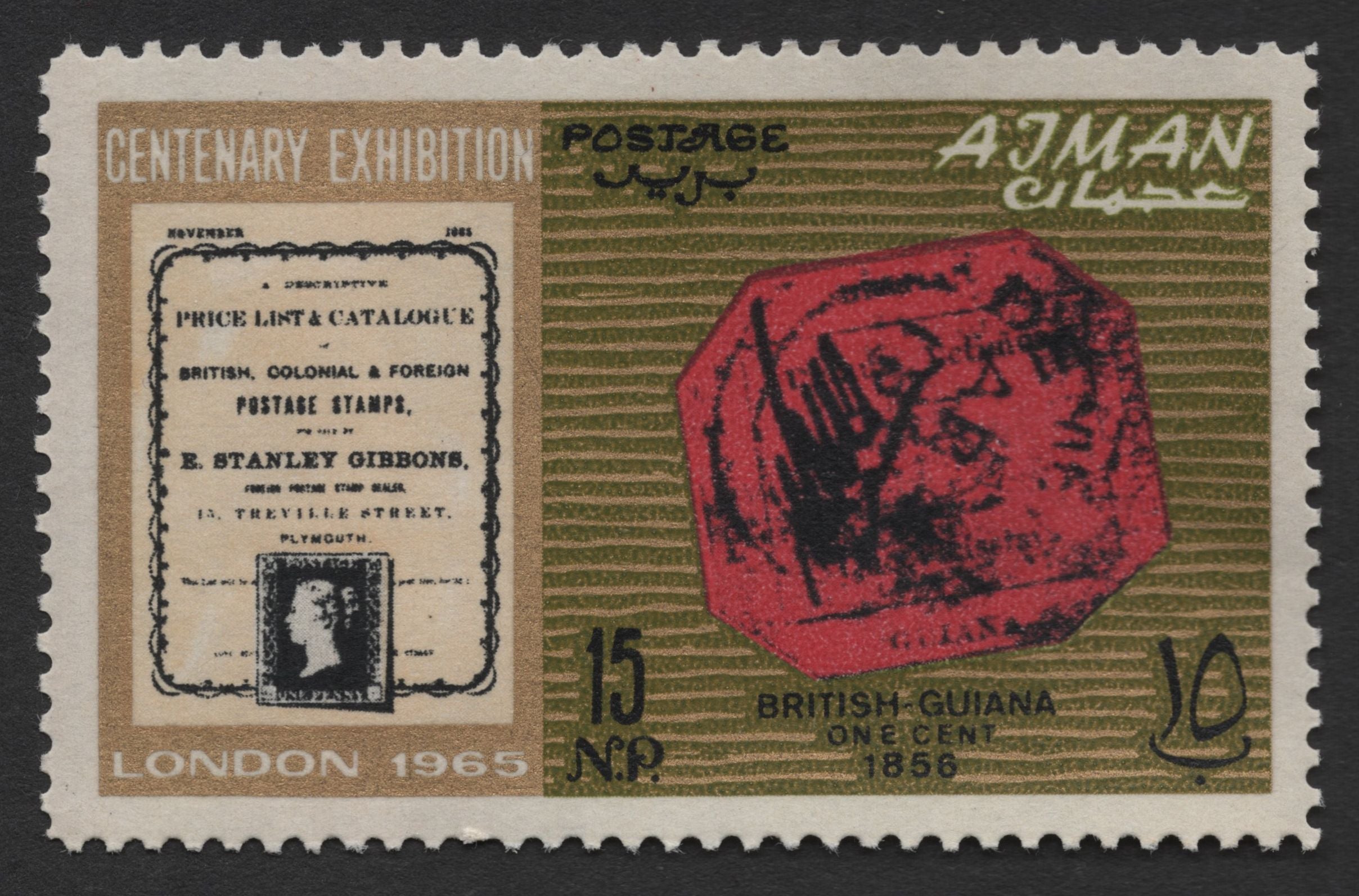 Scg1693 - ajman 1965 stamp-on-stamp – british guiana 1856 tribute