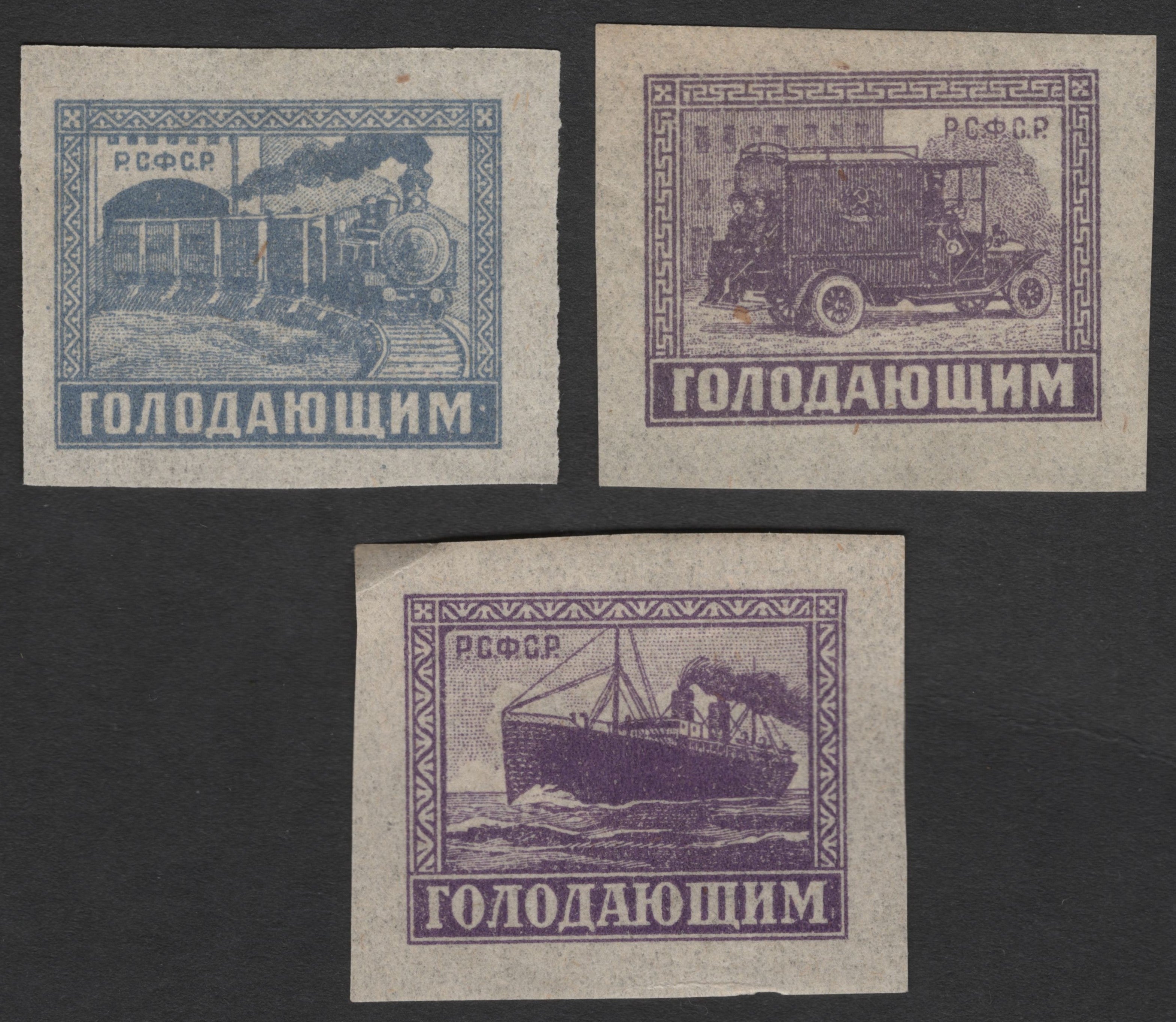 Scg1788 - russia 1921 rsfsr famine relief charity labels – transport series (set of 3)