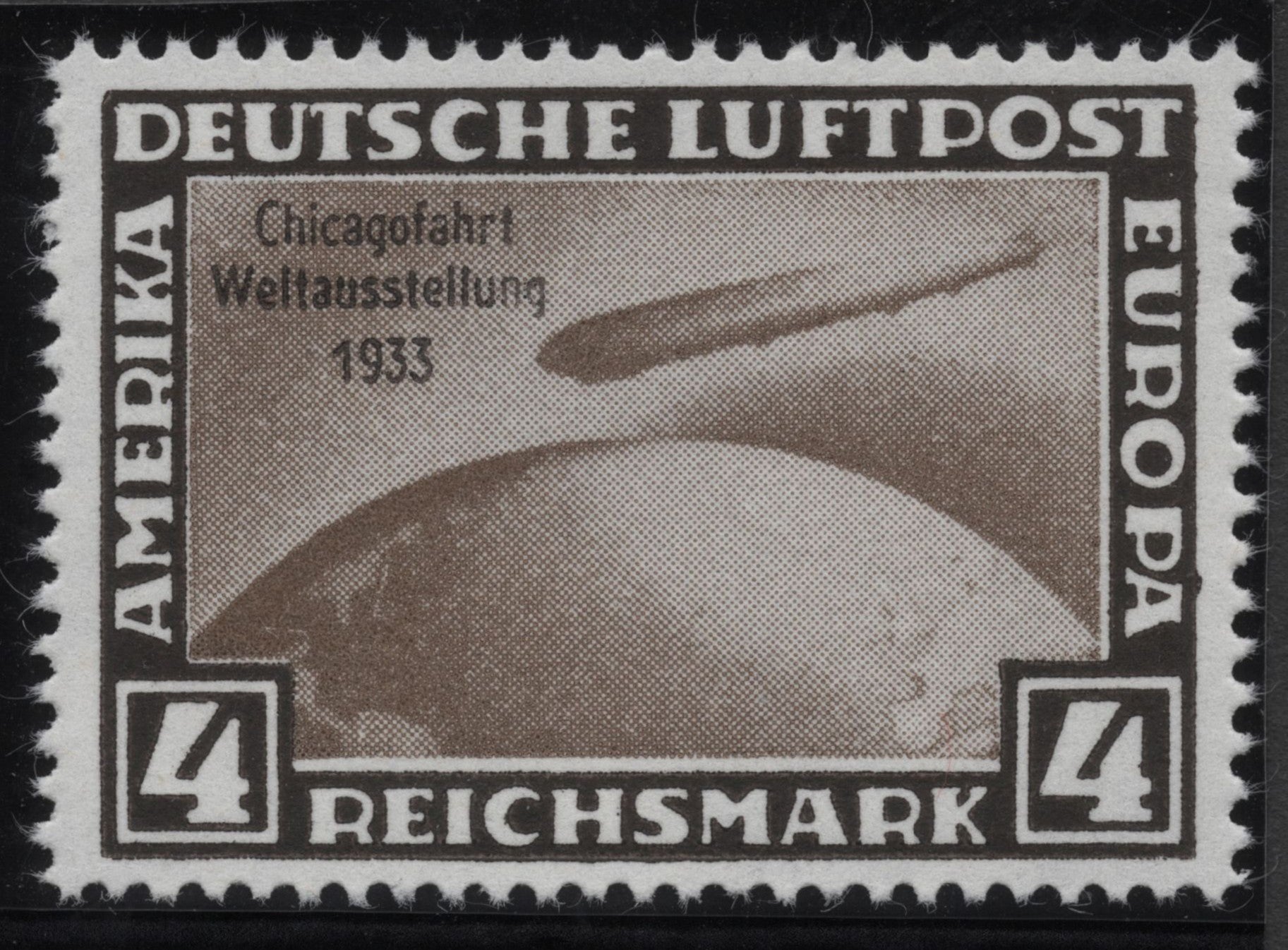 Scg1820 - germany 1933 zeppelin airmail – chicago flight overprint (4 reichsmark brown)