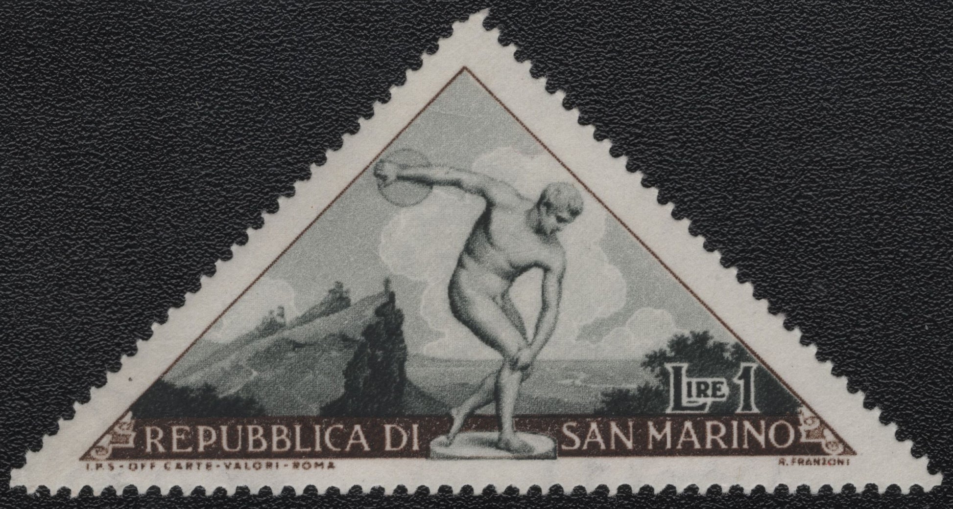 SCG1010 - San Marino – 1 Lire Discus Thrower Triangular Stamp