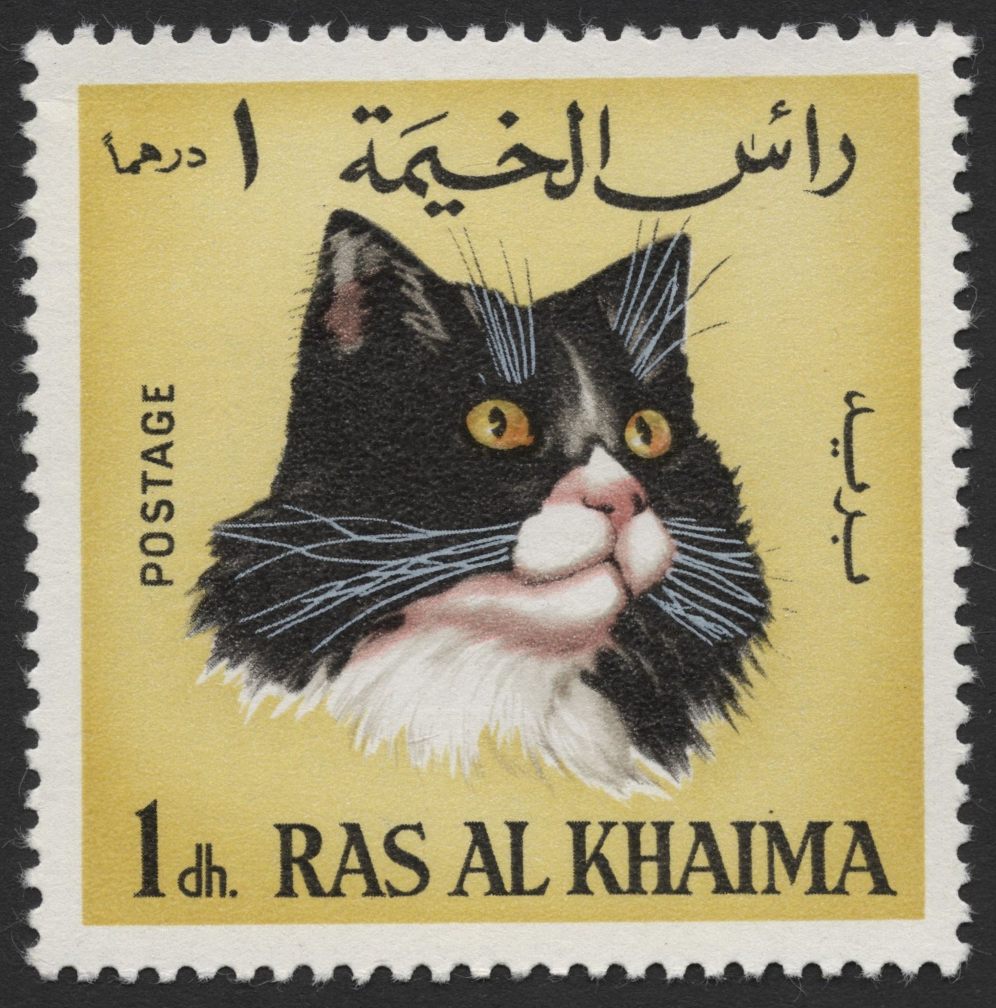 This charming trio from Ras Al Khaimah showcases vividly illustrated cat portraits, each denominated in dirhams (1dh, 4dh, 5dh). The stamps highlight a variety of feline breeds with expressive detail, printed in bold pastel backgrounds. Part of a thematic series popular with animal and topical collectors, these mint stamps reflect the emirate’s colorful philatelic issues of the 1970s. Ideal for those building a cats-on-stamps or Middle Eastern collection.