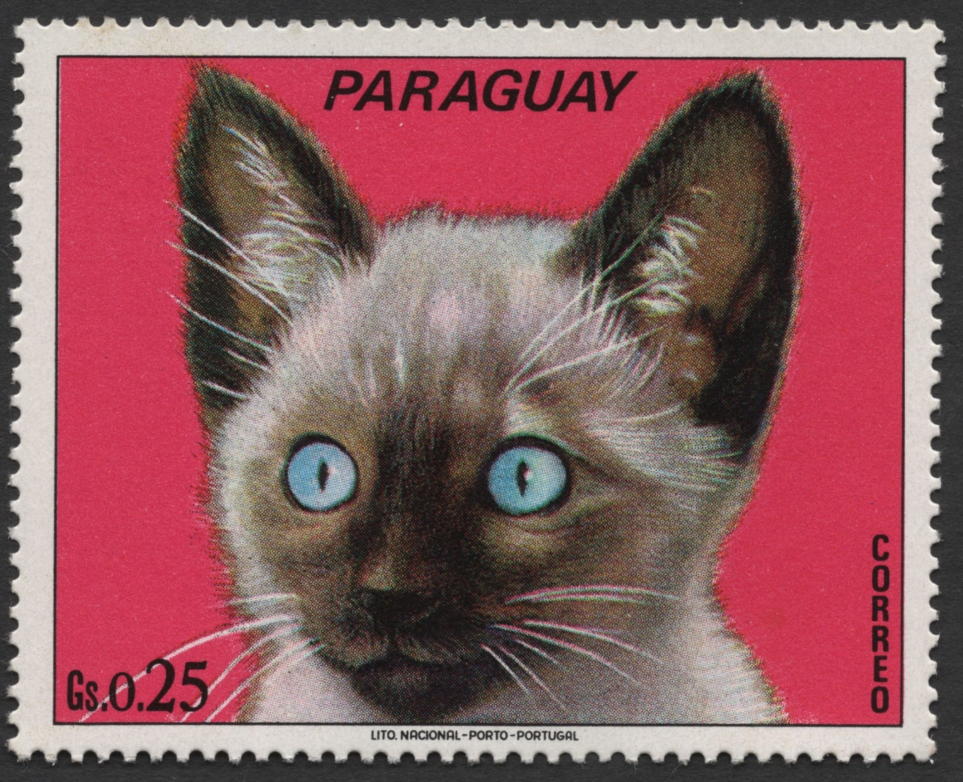 This eye-catching set from Paraguay features three vibrant stamps portraying various cat breeds, each with strikingly expressive eyes. Issued in the 1970s and printed in Portugal, these stamps are popular among animal topical collectors. The denominations range from Gs. 0.25 to Gs. 0.75, making them both accessible and visually appealing additions to any feline or thematic collection.