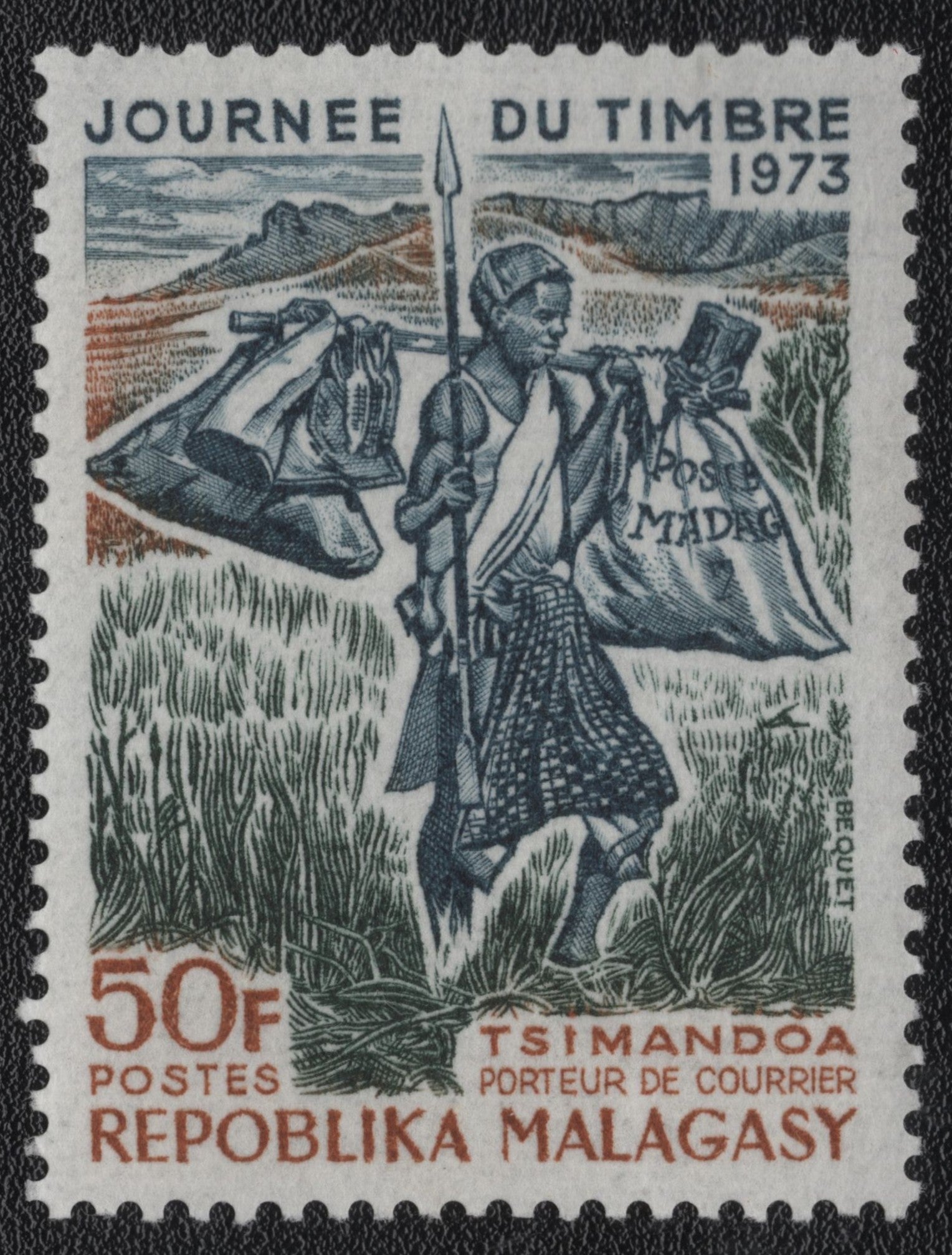 SCG1724 - Madagascar 1973 – Stamp Day: Traditional Mail Carrier “Tsimandoa”