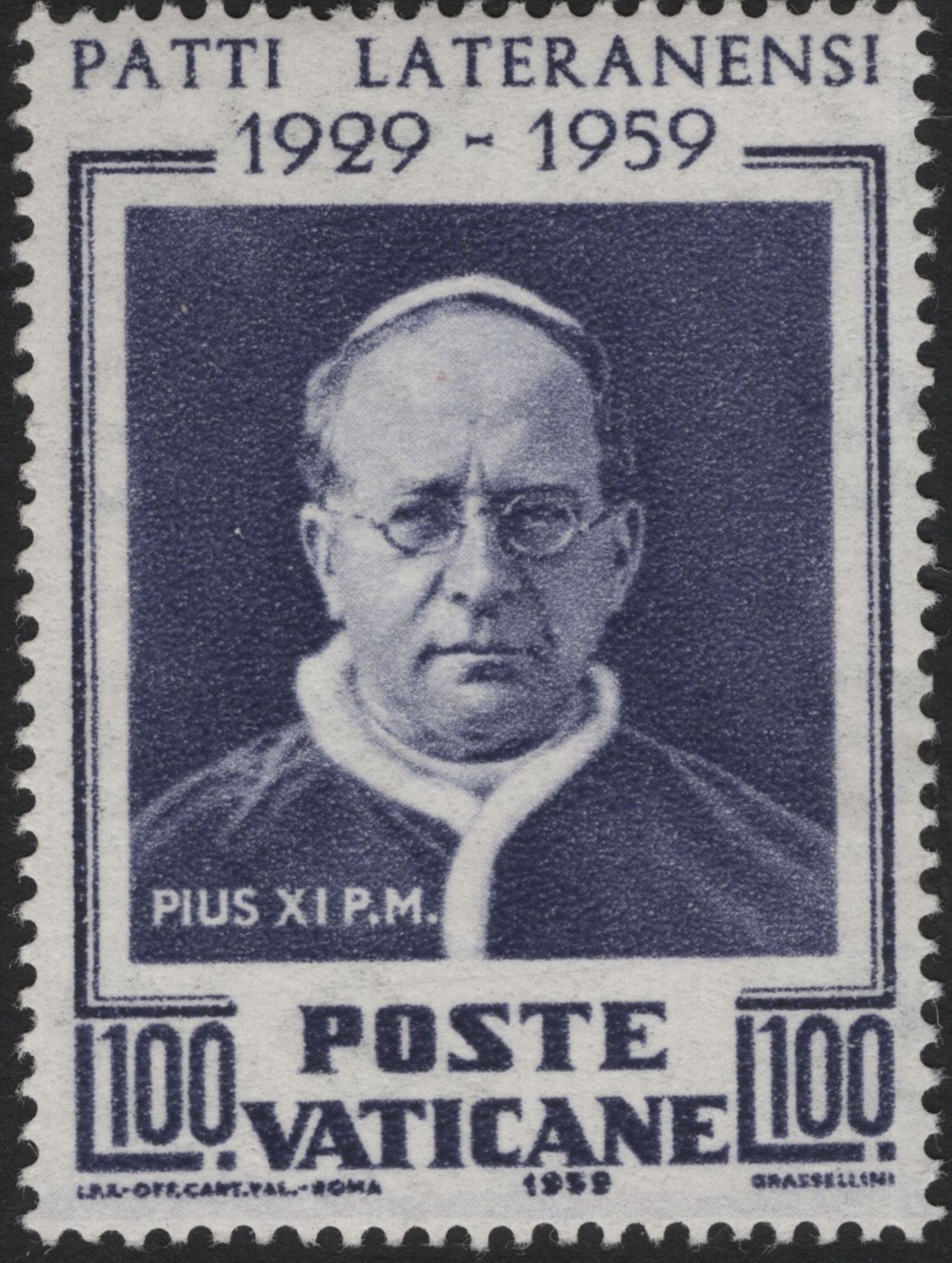SCG5606 - Vatican City 1959 Lateran Treaty 30L & 100L Stamps – Pope Pius XI Commemoration